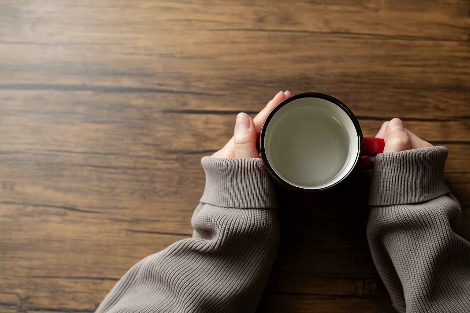 デスクにマグカップを置いて温かい飲み物を少しずつ飲むだけでも、体の内側から潤いを保つことができます。