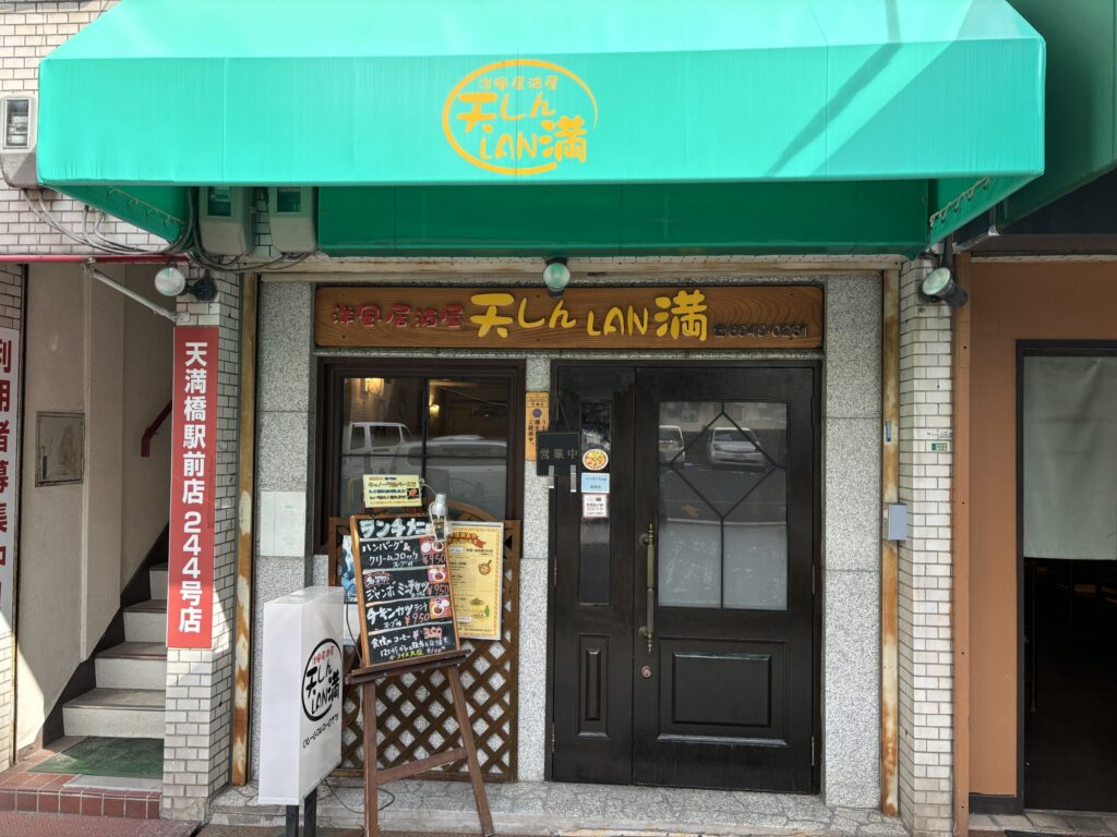 大阪・天満橋の駅から徒歩3分、緑のテントが目印の「天しんLAN満(てんしんらんまん)」は、長年愛される洋食屋さんです。