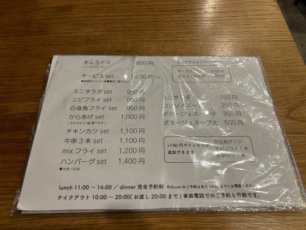 メニューはどれもオムライスが主役。