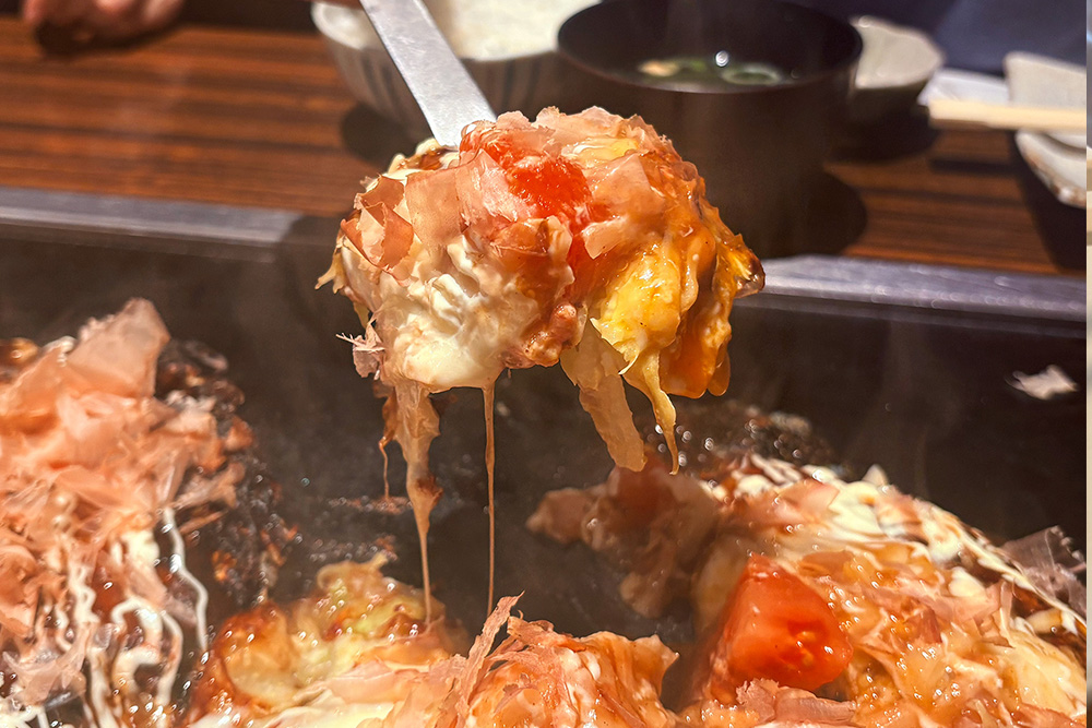 今回は「トマトチーズ玉」という少し変わったメニューも注文し、とろ〜りと伸びるチーズも楽しめました。