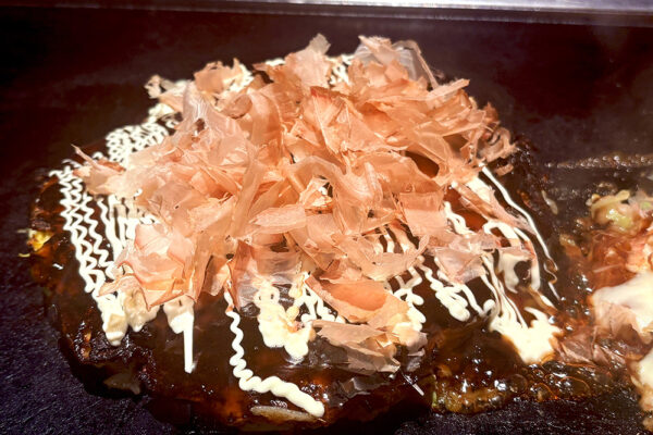 お好み焼きは、表面がこんがりと焼き上げられ、中はふっくらとやわらかな仕上がりです。ソースの甘辛さが広がると同時に、生地と具材の一体感が感じられ、ひと口ごとにほっとするような味わいが広がります。焼きたてをそのまま味わえるので、最後まで熱々のまま楽しめるのも嬉しいポイントです。