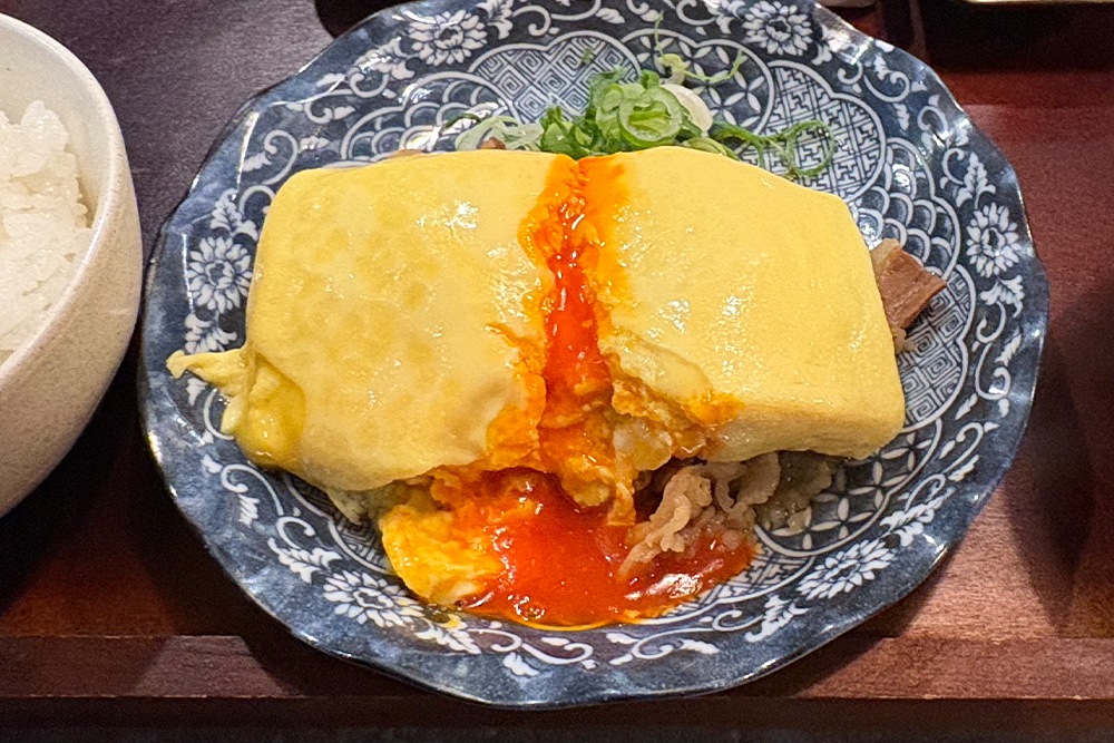 今回いただいたのは、看板メニューの「だし巻きと牛しぐれ煮の定食」。お値段は1,000円と、内容を考えるととても良心的です。運ばれてきた瞬間、ふんわりと立ちのぼる出汁の香りに思わず顔がほころびます。主役のだし巻きは、箸を入れるとじゅわっと出汁があふれ出すほど瑞々しく、やさしい甘みが口いっぱいに広がります。