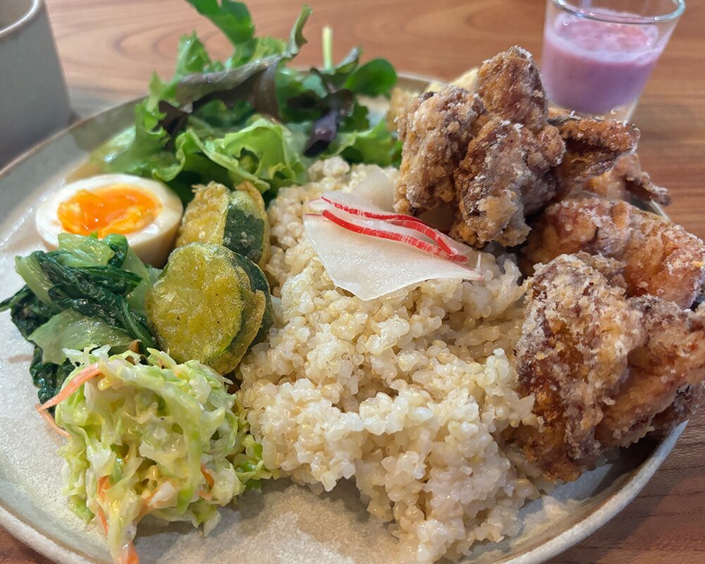 塩麹の旨みがしっかり染み込んでいて、噛むたびにやさしいコクが広がります。からあげが人気メニューというのも納得で、揚げ物でありながら重たさを感じにくく、最後まで心地よく食べ進められました。