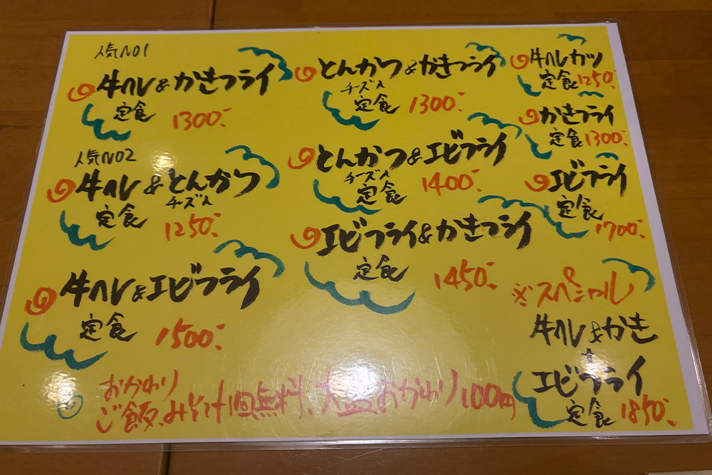 一方の牛ヘレは、やわらかく上品な味わいで、噛むほどに肉の旨みが広がります。揚げ物とお肉という満足感の高い組み合わせを、1,300円で楽しめるのは、正直かなりの高コスパ。しっかり食べたい日にも、ちょっと贅沢したいランチにもぴったりです。