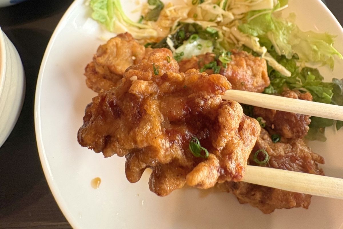 大きめにカットされた鶏肉は、外はカリッと香ばしく、中は驚くほどジューシー。噛んだ瞬間に肉汁がじゅわっと広がり、満足感の高い仕上がりです。