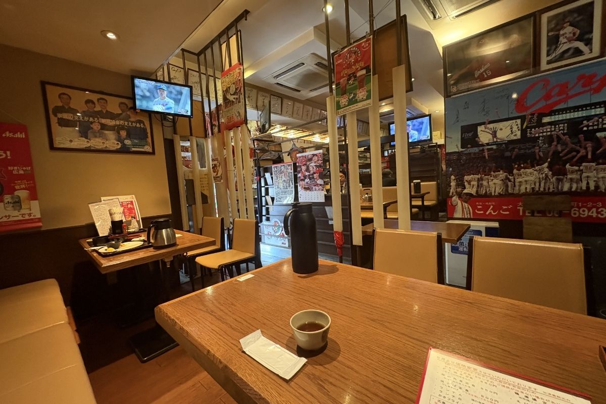 天満橋駅から徒歩2分ほどの場所にある「鉄板居酒屋 こんご」。アクセスの良さも魅力ですが、扉を開けた瞬間に広がる独特の空間に思わず引き込まれます。店内には広島カープのユニフォームやグッズがずらりと並び、壁には著名人のサインも多数。まるで広島に来たかのような雰囲気で、カープファンはもちろん、そうでない方でもワクワクするような空間です。