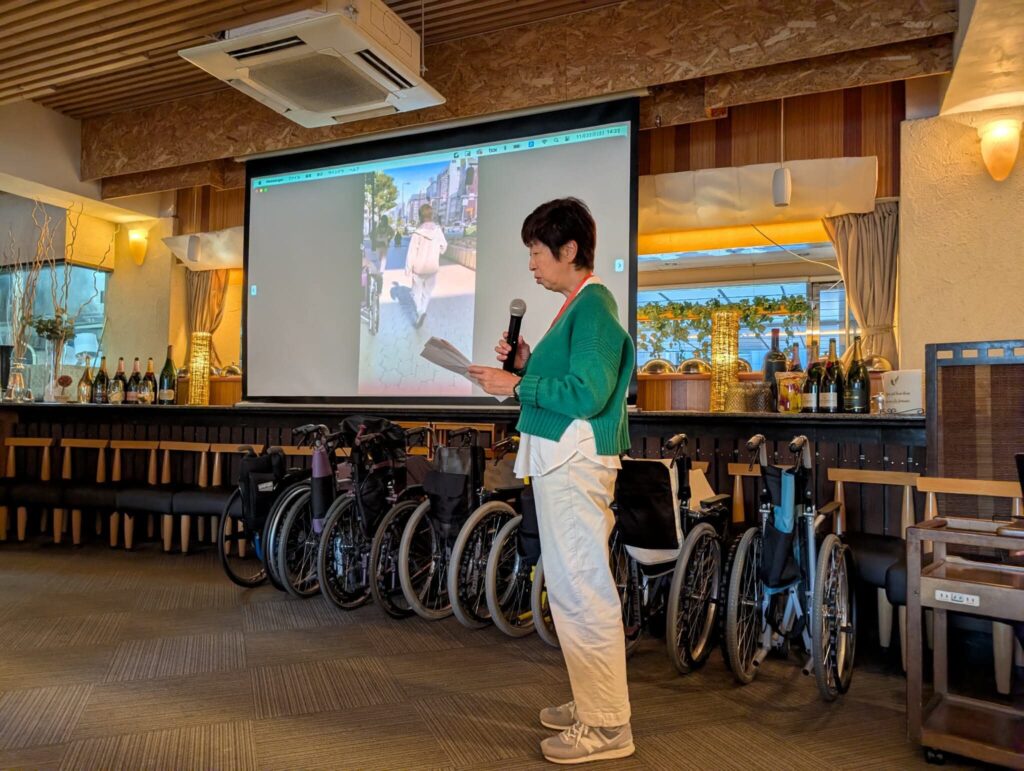 車いすユーザーの目線でまちを歩き、バリアや配慮の視点に気づくことを目的としています。
