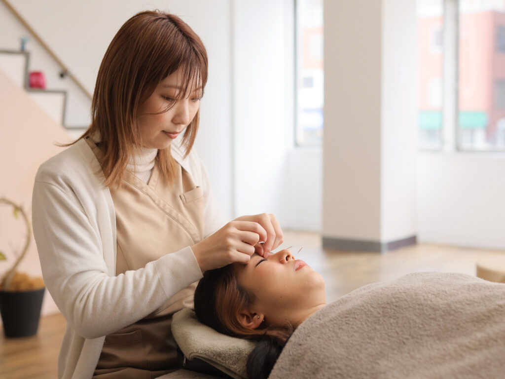 美顔鍼では、お客様のお悩みと骨格に合わせた調整を行います。エステで培った似合わせ施術が好評です。